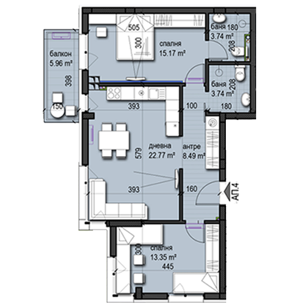 • Проект ж.к Манастирски ливади – Четвърти етаж