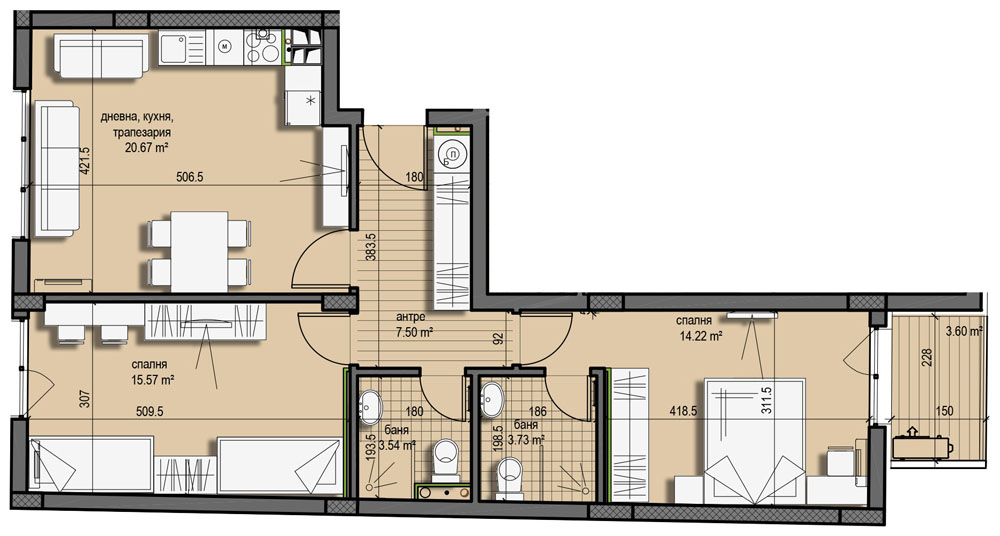 Проект Константин Величков 179 – Етаж 1 | Апартамент 4